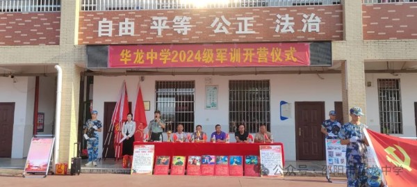 為了讓學生增強國防觀念和國家安全意識,培養(yǎng)同學們吃苦耐勞的優(yōu)良作風,8月22日上午,華龍學校舉行了2024級高一新生軍訓開營儀式。學校彭書記、羅校長、周科長、劉科長、范科長、軍訓總指揮蔣部長出席了開營儀式,開營儀式由賀老師主持。