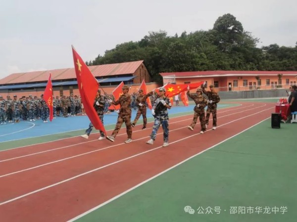"一二一、一二一,踏、踏、踏,學(xué)校儀仗隊(duì)手持步槍,身著軍服,舉著鮮艷的五星紅旗,邁著整齊有力的步伐向我們走來了。華龍高一學(xué)子喊著響亮的口號(hào)閃亮出場(chǎng)了。